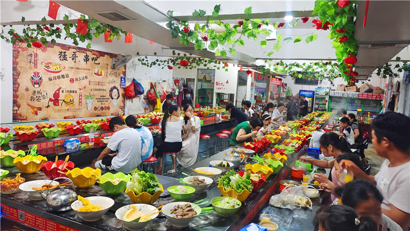 7月22日,周五。傍晚時(shí)分,一場(chǎng)暴雨如約而至,給燥熱的天氣帶來絲絲涼意。位于西華原縣委黨校院內(nèi)的串吧老板李猛從后廚走出,搬把凳子坐在店門口一邊涼快,一邊刷新著手機(jī)天氣預(yù)報(bào)。他得根據(jù)天氣情況估摸一下當(dāng)晚的客流量,以備食材。