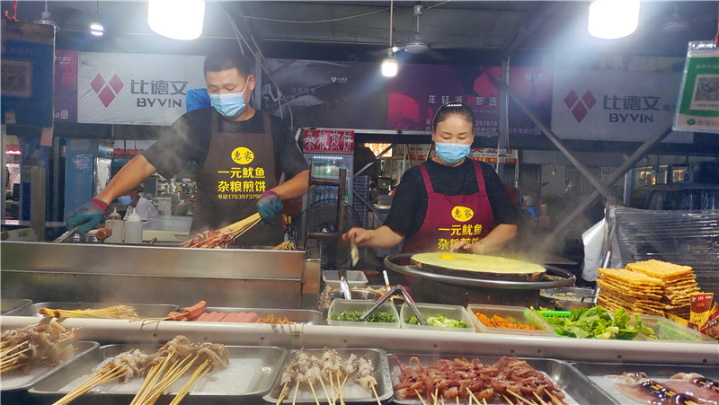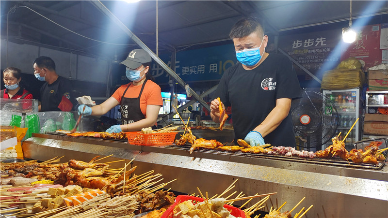 采訪中,記者還了解到,在原縣委黨校地?cái)傄故邪l(fā)展壯大的過程中,西華縣商務(wù)局、城管局、市場(chǎng)監(jiān)管局等部門牽頭引導(dǎo)商戶在西華縣高鐵站、上億美食廣場(chǎng)和西華縣南廣場(chǎng)設(shè)置地?cái)傄故?,進(jìn)行規(guī)范管理,繁榮西華“夜經(jīng)濟(jì)”,共設(shè)置190余家攤位,日均消費(fèi)35萬元左右。①5