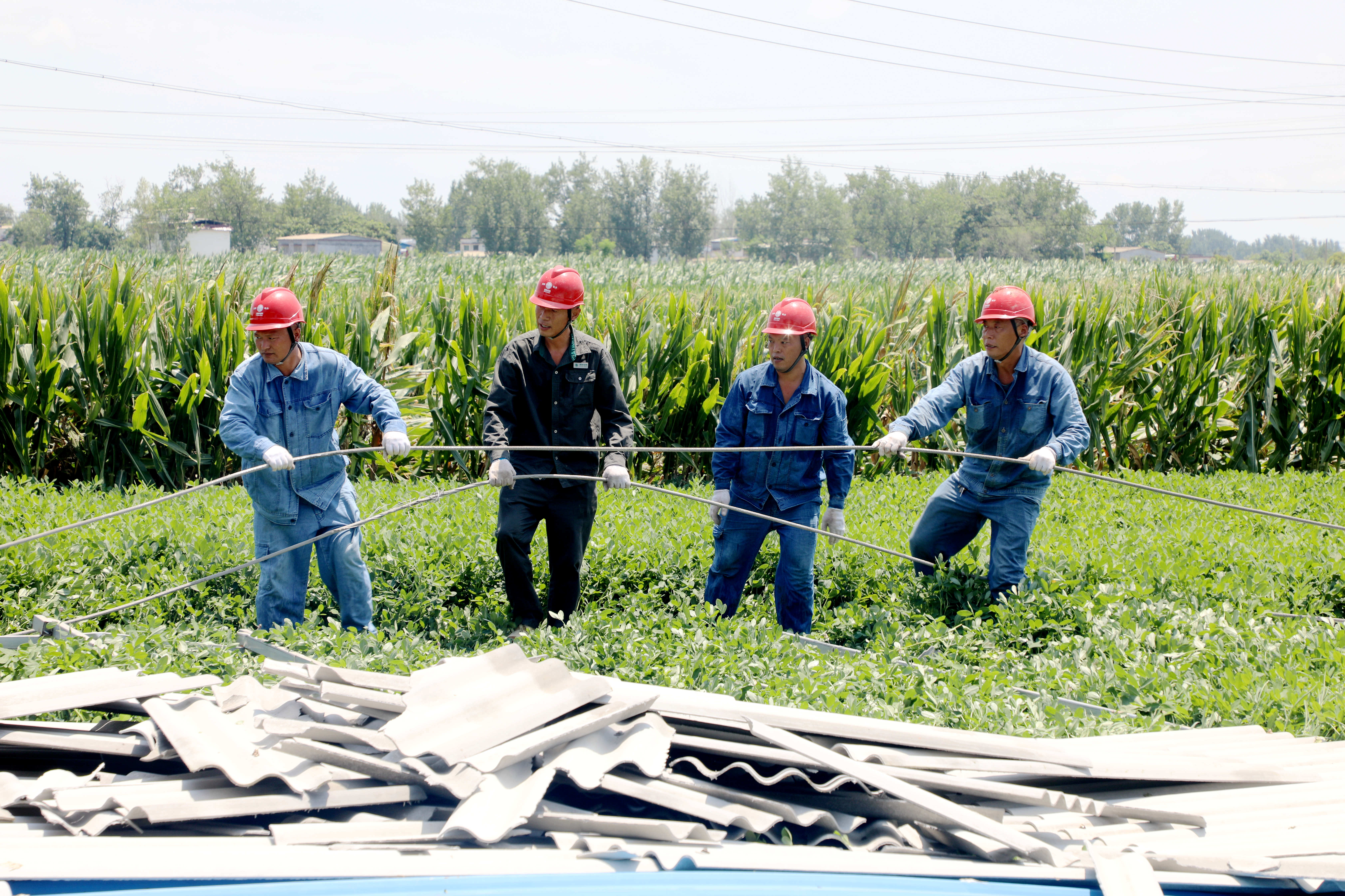 在35千伏址坊變電站10千伏灣張線出線倒桿緊急搶修現(xiàn)場,焦裕祿共產(chǎn)黨員服務(wù)隊沖在最前線,戰(zhàn)高溫、斗酷暑,將原電桿位置遷移,在安全地點重新立桿接線,高效完成牽引、挖坑、立桿、填土、鞏固、緊線等搶修工序。經(jīng)過連續(xù)奮戰(zhàn),7月26日20時06分因災(zāi)停電線路全面恢復(fù)供電。③9