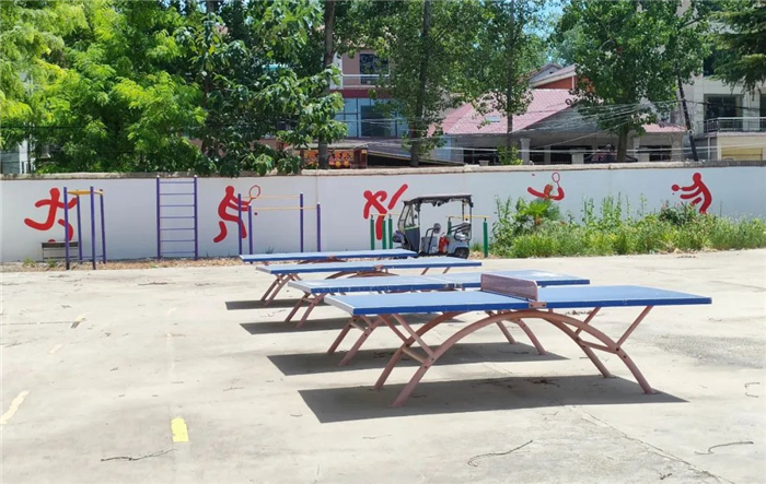 操場上鮮紅的圖案、文字為校園文化建設(shè)注入了新鮮活力。