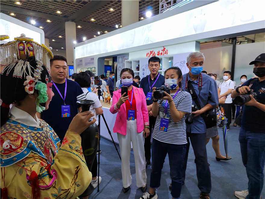 中國非物質(zhì)文化遺產(chǎn)博覽會,每兩年舉辦一屆,是非遺領(lǐng)域的全國性重要品牌活動,已成為展示非遺保護成果、宣傳非遺保護理念、引領(lǐng)非遺保護工作的重要平臺。本屆非物質(zhì)文化遺產(chǎn)博覽會為期5天,河南省有16個非遺項目、4個非遺美食企業(yè)參展,布置在文化底蘊深厚的“行走河南·讀懂中國”展區(qū)。淮陽黑陶、仰韶彩陶、唐三彩、魯山窯、汝瓷、鈞瓷、登封窯、當(dāng)陽峪絞胎瓷、澄泥硯、??h泥咕咕燒制技藝在展廳一一亮相。淮陽黑陶燒制技藝省級傳承人張輝攜帶的部分作品以大氣、精美的文化底蘊深深吸引著人們觀賞,各派非遺戲曲傳人也紛紛捧起他的黑陶作品展示中原古老的黑陶藝術(shù)文化。②15