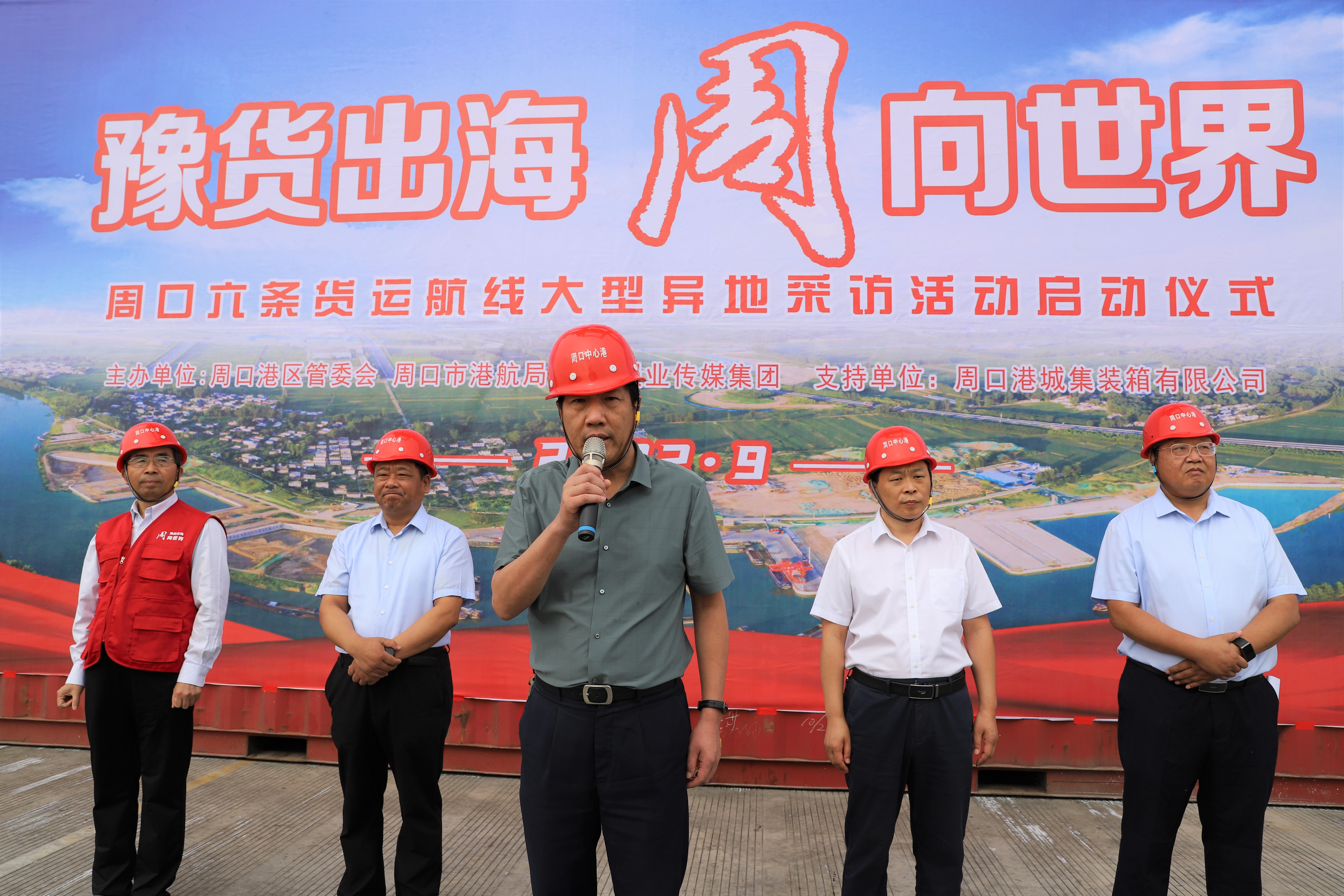 9月21日上午,由周口港區(qū)管委會(huì)、周口市港航局、周口報(bào)業(yè)傳媒集團(tuán)、周口港城集裝箱有限公司聯(lián)合組織開展的豫貨出海 “周”向世界——周口六條貨運(yùn)集裝箱航線大型異地采訪活動(dòng)在周口中心港碼頭正式啟動(dòng)。
