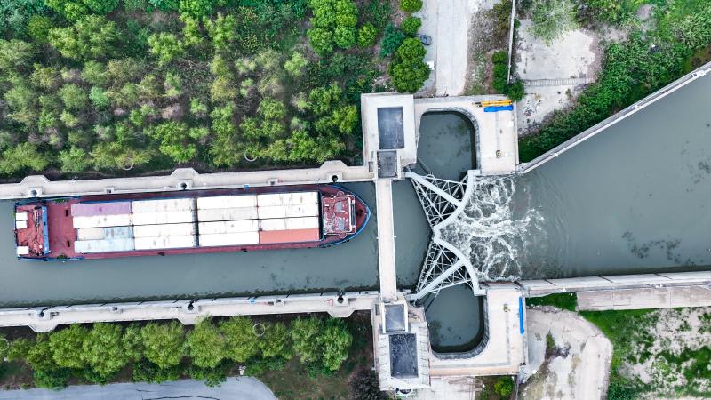 2021年6月,裕溪一線船閘擴(kuò)容改造工程全面啟動,舊船閘被拆除,原位建設(shè)新船閘,預(yù)計2023年投入使用。相關(guān)資料顯示,改造后的裕溪一線船閘是全世界首座采用34米巨型三角閘門的船閘,設(shè)計最大船舶噸級為2000噸級,年設(shè)計通過能力7400萬噸,以應(yīng)對日益增長的貨運需求。