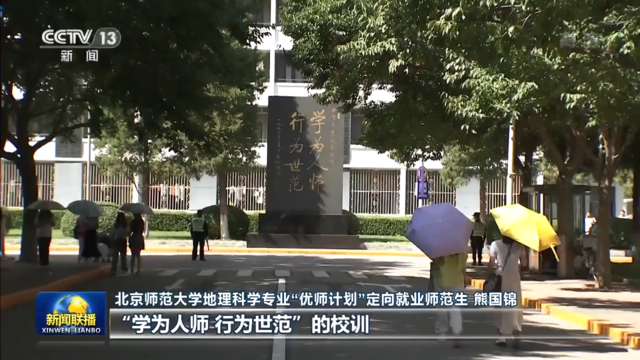 北京師范大學(xué)地理科學(xué)專業(yè)“優(yōu)師計劃”定向就業(yè)師范生 熊國錦:總書記在回信中說,希望我們繼續(xù)秉持“學(xué)為人師 行為世范”的校訓(xùn),努力成長為黨和人民滿意的“四有”好老師,這讓我真切地感受到總書記對我們的關(guān)懷與期望。