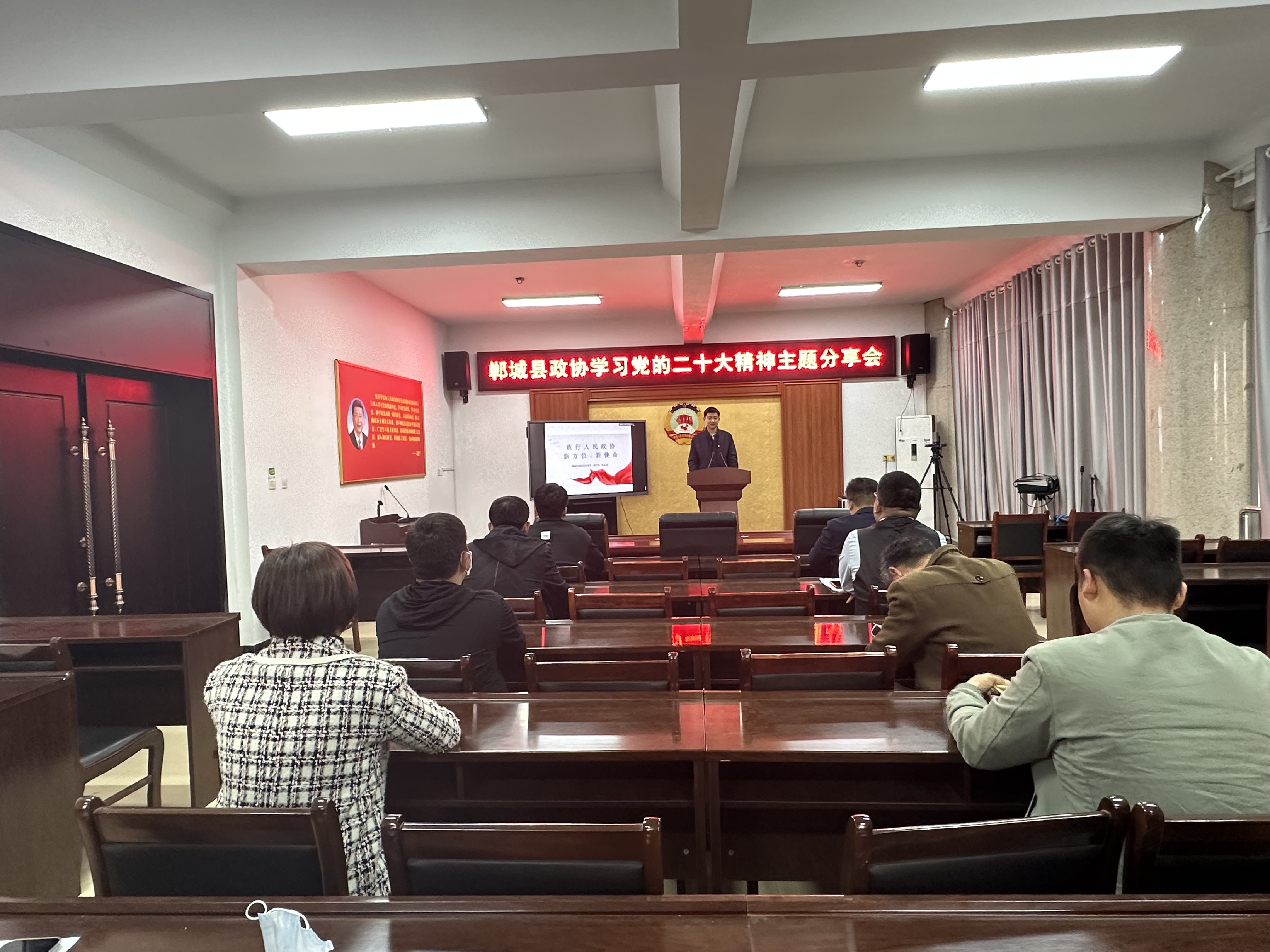 為深入學習宣傳貫徹黨的二十大精神,落實中央和省委、市委、縣委、縣政協(xié)工作會議精神,持續(xù)深化“委員讀書學習”活動,提升政協(xié)履職實效,激發(fā)干事活力,11月17日,鄲城縣政協(xié)舉辦“學精神踐行動 閱讀向未來”學習黨的二十大精神主題分享會。縣政協(xié)秘書長朱東風及全體機關(guān)人員參加活動。