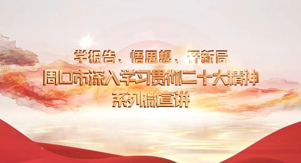 為深入學(xué)習(xí)貫徹黨的二十大精神,中共周口市委宣傳部、中共周口市委黨校和周口報(bào)業(yè)傳媒集團(tuán)共同制作“學(xué)報(bào)告 悟思想 開(kāi)新局”系列宣講微視頻,將分專題陸續(xù)推出。
