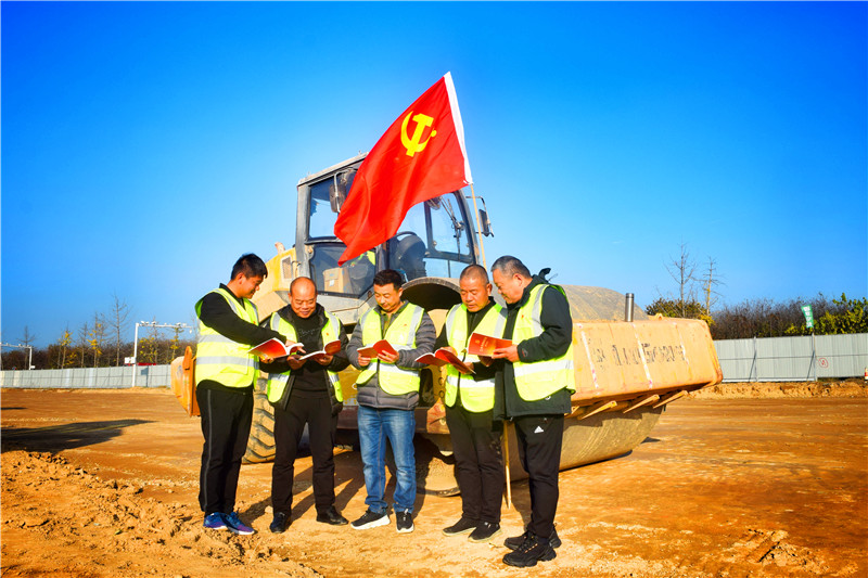 黨旗迎風(fēng)飄揚,機(jī)器轟鳴作響,伴隨著壓路機(jī)、挖土機(jī)等施工機(jī)械的作業(yè)聲,周口市公路系統(tǒng)職工在項目施工現(xiàn)場學(xué)習(xí)黨的二十大精神成為一道亮麗的風(fēng)景。