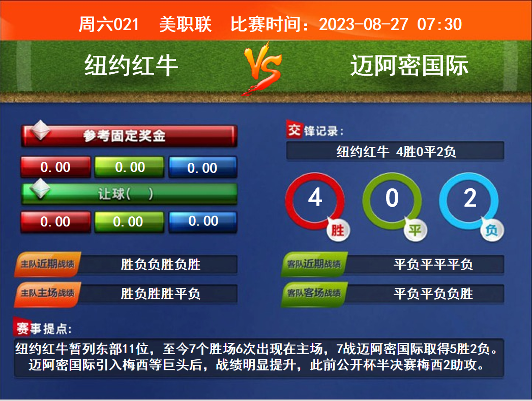 周六021 美職聯(lián) 紐約紅牛VS邁阿密國際