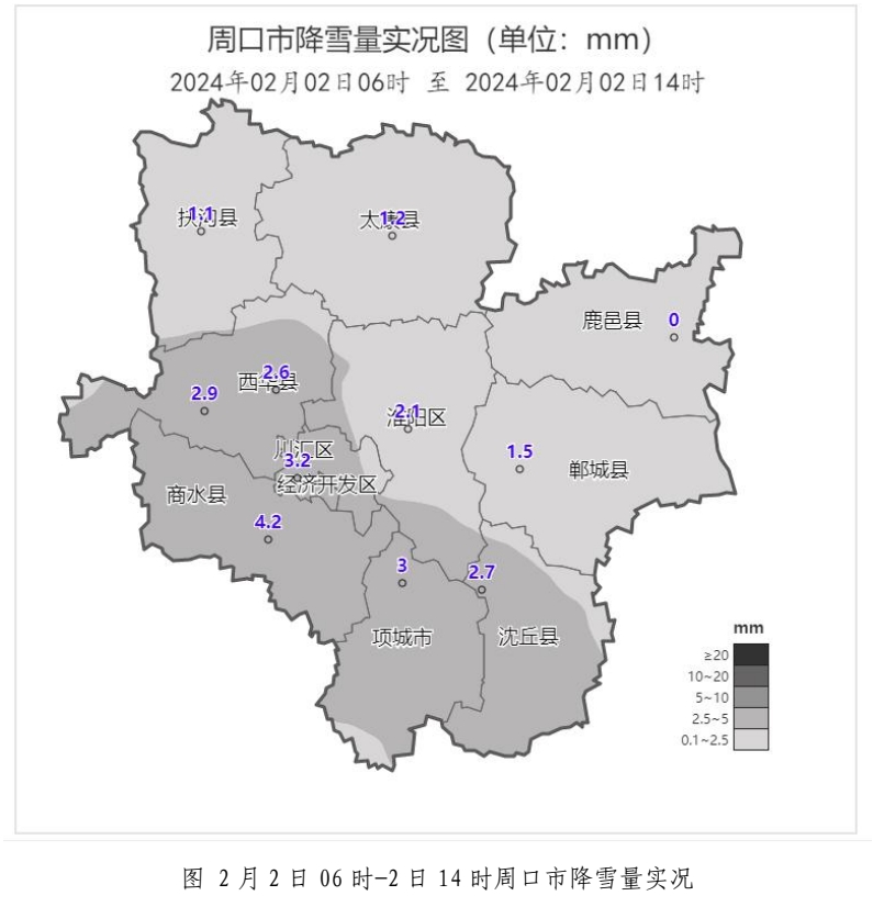 雪深:2月2日14時(shí)各縣市區(qū)雪深(厘米):沈丘5.6、項(xiàng)城5.5、商水5.0、太康4.5、川匯區(qū)4.4、西華4.0、泛區(qū)4.0、扶溝3.0、鄲城1.7、鹿邑1.0、淮陽1.0。