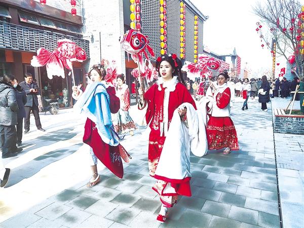 • 翠袖紅裙、直襟長袍……身著漢服的演員,手持魚燈,巡游關帝老街,伴隨著樂曲翩翩起舞,成為一道靚麗的風景線。