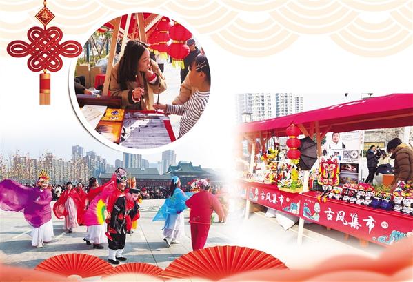 • 2月9日,在周口首屆“三川十館·春會”歷史街區(qū)關帝廟廣場上,精彩紛呈的劃旱船、抖空竹、舞鞭陀龍等民俗表演節(jié)目向游客送去了春節(jié)的美好祝福。人們在春會的各個活動板塊,趕大集、賞民俗,喜迎新年的到來。