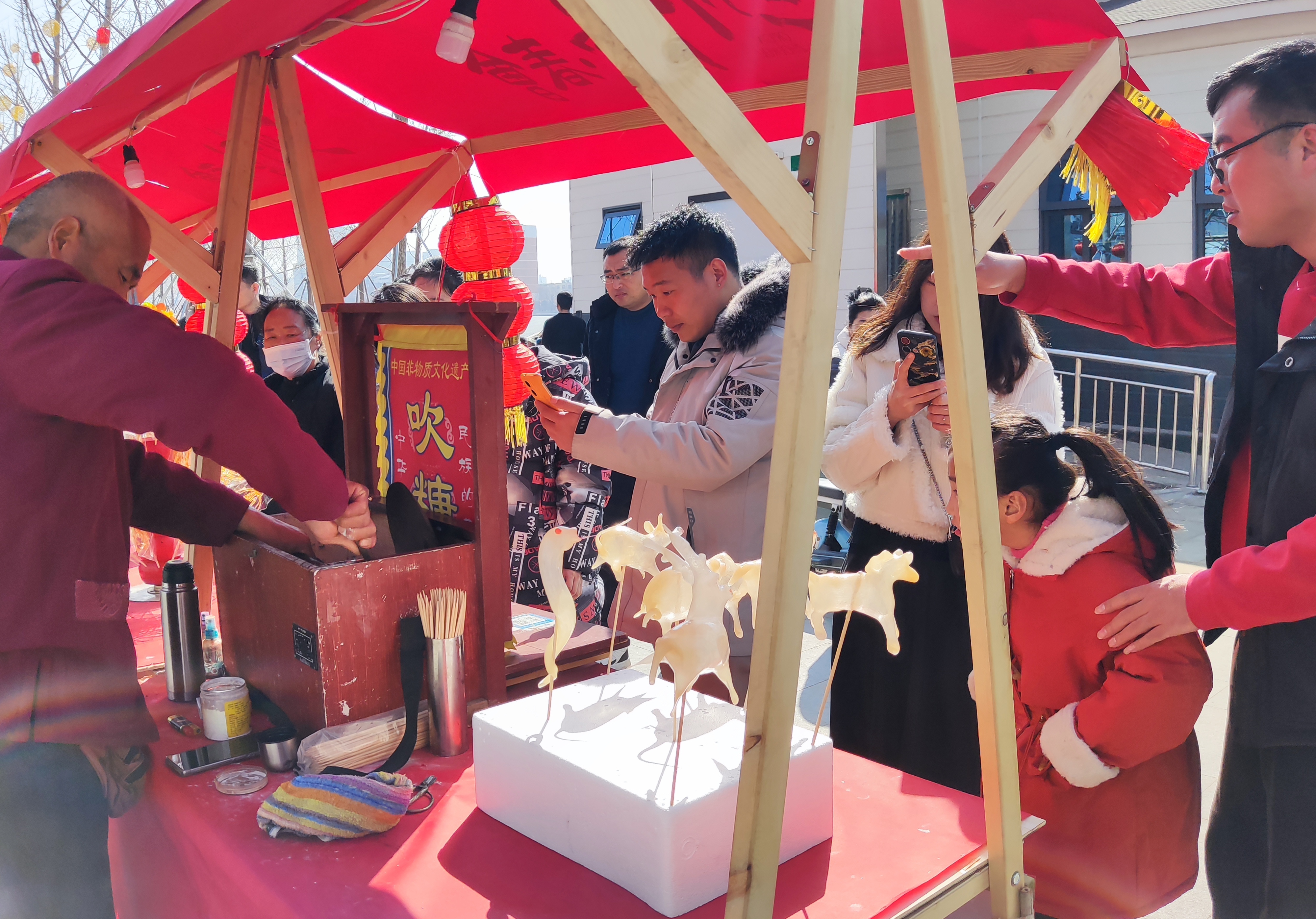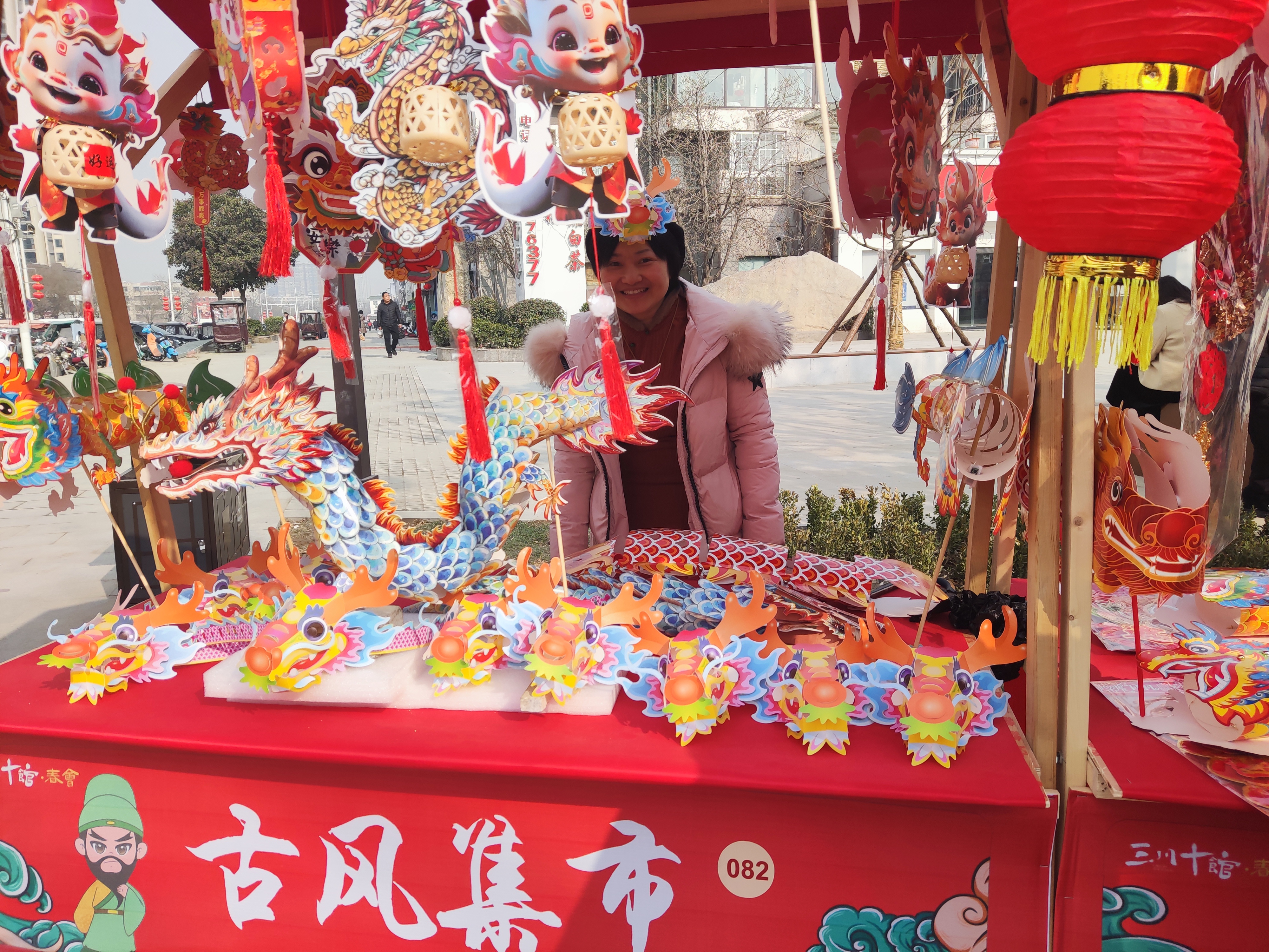 2月12日,“三川十館·春會”關帝廟歷史街區(qū)的“古風集市”上,人來人往、熙熙攘攘。布老虎、泥泥狗、剪紙、棕編、草編、糖人等具有周口特色的非遺產品營造了濃濃的年味,吸引大量游客前來欣賞、購買。多姿多彩的非遺產品也讓龍年春節(jié)更加具有文化氣息。(記者 王吉城 攝)