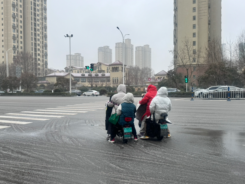 記者在周口大道看到,過(guò)往車輛紛紛拉開(kāi)車距、緩慢通行,騎電動(dòng)車的市民大多戴上了帽子、裹緊了身上的棉衣,過(guò)往行人撐著雨傘、頂著寒風(fēng)匆匆趕路。