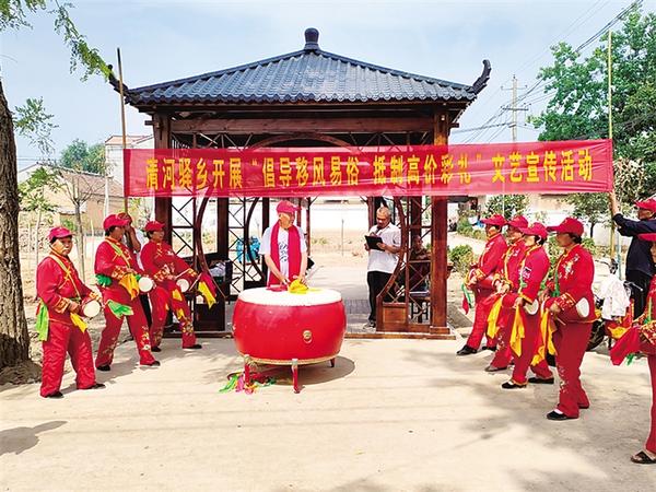 “結(jié)婚本是兩家喜,為啥非要去攀比”“講文明來樹新風(fēng),天價彩禮行不通”……連日來,西華縣清河驛鄉(xiāng)移風(fēng)易俗鑼鼓隊敲響鑼鼓,引來群眾紛紛圍觀。