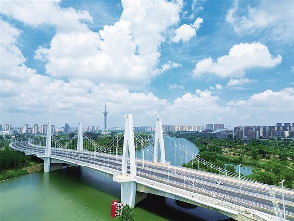 7月25日,藍(lán)天白云映襯下,周口市七一路跨沙潁河大橋以“揚(yáng)帆出海”的獨特造型,生動展現(xiàn)了這座中原港城的雄心。作為河南“豫貨出?!钡臉蝾^堡,周口正肩負(fù)起港口型國家物流樞紐承載城市的重任,推動“經(jīng)濟(jì)通道”邁向“通道經(jīng)濟(jì)”,實現(xiàn)高質(zhì)量發(fā)展。
