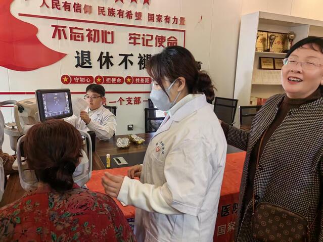 活動(dòng)現(xiàn)場設(shè)置視力檢測區(qū)、眼底篩查區(qū)等功能區(qū)域,醫(yī)護(hù)人員為老同志進(jìn)行全面眼部健康檢查和評估,重點(diǎn)篩查白內(nèi)障、青光眼等老年高發(fā)眼病,并現(xiàn)場為老同志講解有關(guān)眼健康防護(hù)知識(shí)。針對檢測中發(fā)現(xiàn)的疑似白內(nèi)障患者及其他眼疾者,醫(yī)護(hù)團(tuán)隊(duì)現(xiàn)場建立健康檔案并預(yù)約復(fù)診通道,使受檢者有所醫(yī)、有所治,彰顯人文關(guān)懷。