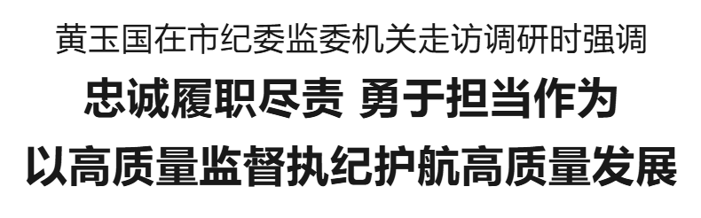 本報(bào)訊(記者 王艷) 12月5日,市委書記黃玉國到市紀(jì)委監(jiān)委機(jī)關(guān)走訪調(diào)研,強(qiáng)調(diào)要深入學(xué)習(xí)貫徹習(xí)近平總書記關(guān)于黨的自我革命的重要思想和在河南考察時(shí)重要講話精神,忠誠履職盡責(zé),勇于擔(dān)當(dāng)作為,不斷推動(dòng)全面從嚴(yán)治黨、黨風(fēng)廉政建設(shè)和反腐敗斗爭向縱深發(fā)展,以高質(zhì)量監(jiān)督執(zhí)紀(jì)護(hù)航高質(zhì)量發(fā)展。
