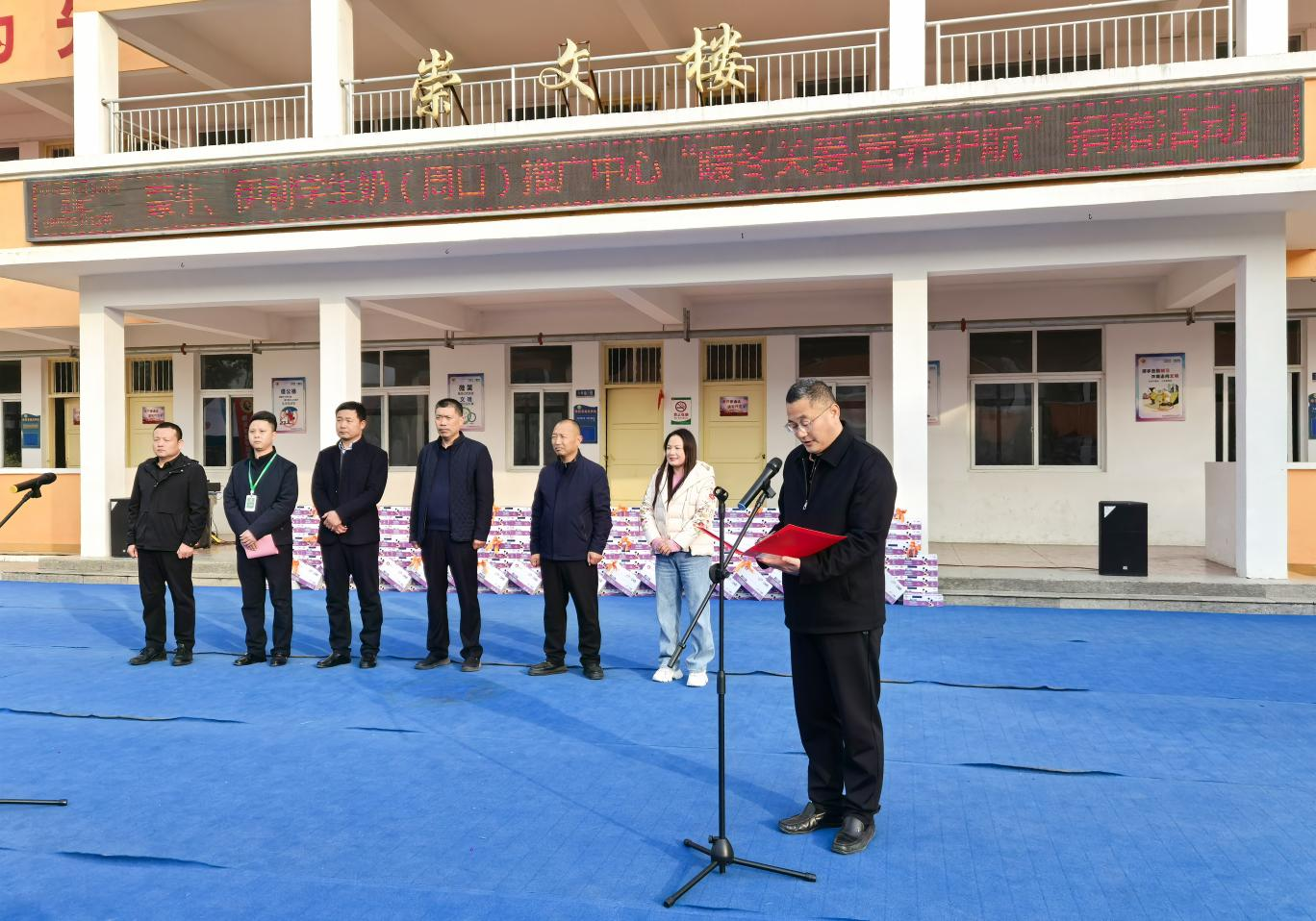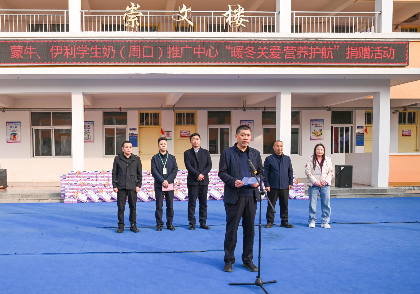 活動(dòng)開始,韓玉東代表淮陽區(qū)教育系統(tǒng)致歡迎辭。他向蒙牛、伊利學(xué)生奶(周口)推廣中心的慷慨捐贈(zèng)表示衷心感謝。他指出,此次企業(yè)的捐贈(zèng),不僅是一箱箱牛奶,更是一份份沉甸甸的關(guān)懷與期望?!拔镔|(zhì)支持”能夠讓孩子們?cè)诤涞亩精@得充足的營養(yǎng),“知識(shí)賦能”則通過健康科普,幫助孩子們樹立科學(xué)的飲食觀念,培養(yǎng)良好的生活習(xí)慣,期待未來有更多企業(yè)和社會(huì)力量加入教育公益事業(yè),共同為孩子們的健康成長保駕護(hù)航。