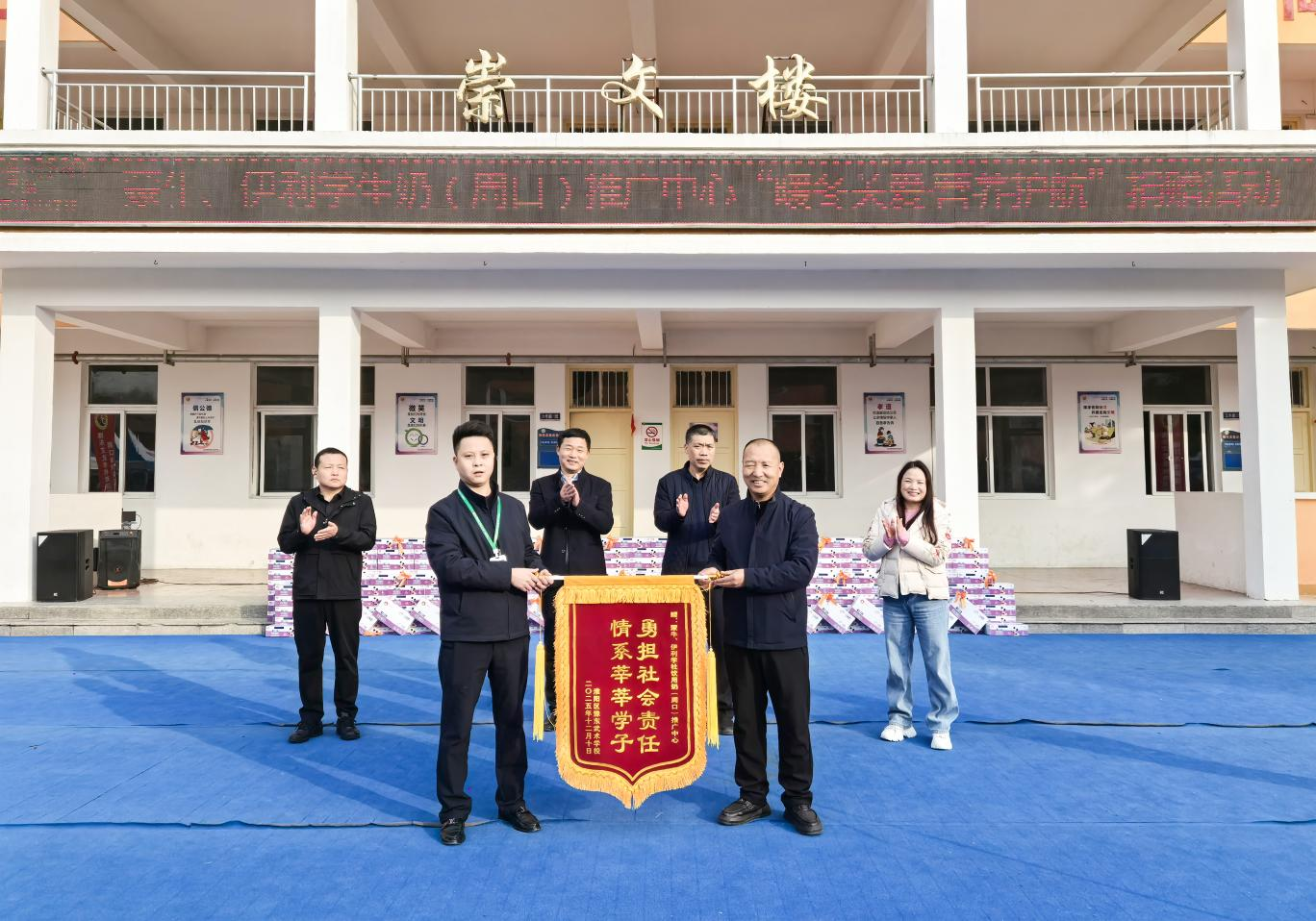 最后,包勇平代表愛心企業(yè)向豫東武術(shù)學(xué)校校長朱明峰授捐贈(zèng)牌,豫東武術(shù)學(xué)校向愛心企業(yè)回贈(zèng)錦旗,并邀請(qǐng)參會(huì)領(lǐng)導(dǎo)及師生代表共同合影留念。