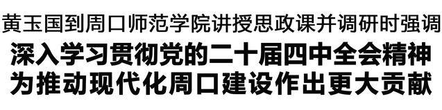 本報訊 (記者 王艷 劉昂) 12月19日,市委書記黃玉國到周口師范學(xué)院為師生代表講授思政課,宣講黨的二十屆四中全會精神,并到教學(xué)科研一線調(diào)研。
