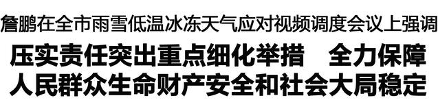 會(huì)議強(qiáng)調(diào),要充分認(rèn)識(shí)到做好此次雨雪低溫冰凍天氣防范應(yīng)對(duì)工作的重要性和緊迫性,樹(shù)牢底線(xiàn)思維、極限思維,嚴(yán)格落實(shí)領(lǐng)導(dǎo)帶班和24小時(shí)值班制度,加強(qiáng)備戰(zhàn)備勤,確保調(diào)度及時(shí)、指令暢通、落實(shí)到位,維護(hù)好正常生產(chǎn)生活秩序。