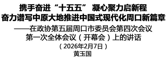 在“十四五”勝利收官、“十五五”開(kāi)局起步的關(guān)鍵時(shí)期,政協(xié)第五屆周口市委員會(huì)第四次會(huì)議隆重開(kāi)幕了。這是全市人民政治生活中的一件大事,是廣納群言、廣集眾智、共謀發(fā)展的一次盛會(huì)。在此,我代表中共周口市委,向大會(huì)的召開(kāi)表示熱烈祝賀,向全體政協(xié)委員和與會(huì)同志致以誠(chéng)摯問(wèn)候!