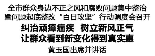 黃玉國指出,今年是三年集中整治攻堅“決戰(zhàn)之年”。要切實增強責(zé)任感、使命感、緊迫感,拿出決戰(zhàn)的氣勢、采取超常規(guī)措施,不怕暴露問題、不搞拖延應(yīng)付,嚴(yán)查人民痛恨之事、狠剎百姓憎惡之風(fēng),確保攻堅決戰(zhàn)打好打贏,努力取得行風(fēng)重塑、基層善治、群眾受益的綜合性效果。