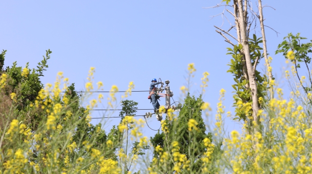 春光明媚檢修忙。4月11日,國網(wǎng)周口供電公司施工人員對(duì)10千伏永4板、永6板開展線路綜合檢修工作。