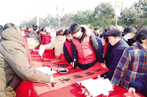近日,在鄲城縣世紀(jì)廣場(chǎng)上,來自全省各地的百余位書法名家齊聚一堂,紅幅鋪展成綿長(zhǎng)的喜慶長(zhǎng)卷,墨香與年味在寒冬里交融。
