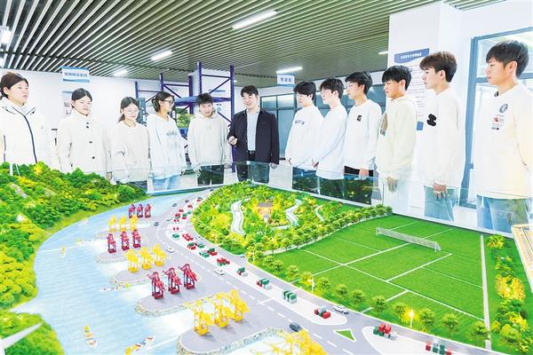 師生在學(xué)?!爸腔鄯抡鎸嵱?xùn)室”了解周口港建設(shè)。近日,周口市港航產(chǎn)業(yè)發(fā)展商會、周口城市職業(yè)學(xué)院戰(zhàn)略合作暨“AI+港航創(chuàng)新中心”簽約揭牌。這是我市又一家職業(yè)院校參與周口航運發(fā)展、校企深度合作的生動實踐。記者 劉華志 攝影