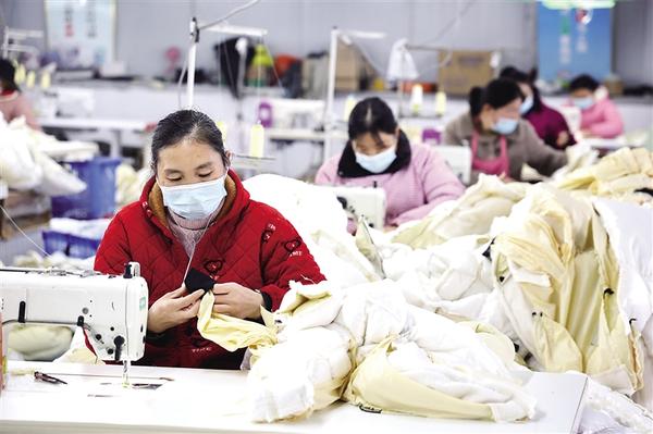 近年來,淮陽區(qū)四通鎮(zhèn)中營子村以黨建為核心引擎,筑牢基層戰(zhàn)斗堡壘,牽頭建起現(xiàn)代農(nóng)業(yè)服務合作社、種植合作社等,走出“黨組織搭臺、企業(yè)唱戲、群眾受益”的強村路徑。圖為村民在村辦服裝廠工作。