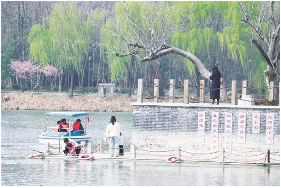 3月19日,沈丘縣中華槐園內(nèi)綠意盎然、景色宜人。市民趁著晴好天氣走出家門,漫步園區(qū),拍照留影、休閑散心,盡享春日愜意時光。