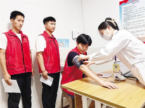 體檢現(xiàn)場,應(yīng)征青年統(tǒng)一穿著紅馬甲,手持體檢指引單、廉潔征兵公開信,排著整齊的隊(duì)伍,逐個科室參加體檢。醫(yī)生現(xiàn)場檢查、現(xiàn)場告知結(jié)論、現(xiàn)場簽字確認(rèn)、現(xiàn)場錄入體檢結(jié)果,在體檢結(jié)束后發(fā)放體檢結(jié)論告知書。