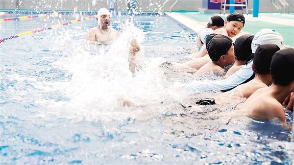 學(xué)生在教練的指導(dǎo)下進(jìn)行游泳訓(xùn)練。近日,項(xiàng)城市清華育英學(xué)校將防溺水課堂“搬”進(jìn)游泳館,開(kāi)展“沉浸式”防溺水安全教育活動(dòng)。