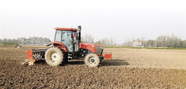11月9日,在淮陽區(qū)高標準農(nóng)田示范區(qū),一臺東方紅拖拉機牽引著復式播種機在地里穿梭。
