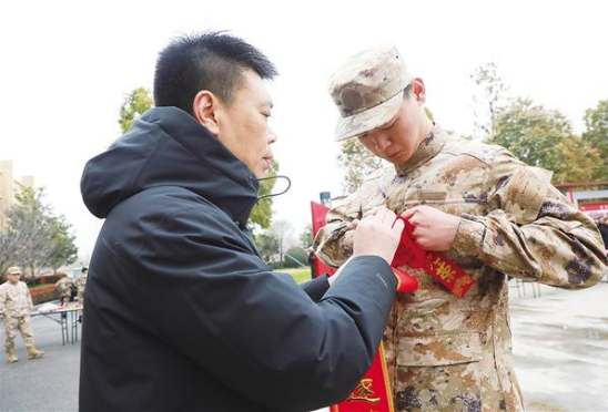 近日,周口川匯區(qū)的新兵歡送現(xiàn)場(chǎng),13位老兵父親親手為新兵兒子戴上大紅花。一個(gè)軍禮,一聲誓言,兩代人的強(qiáng)軍夢(mèng)在此交接。
