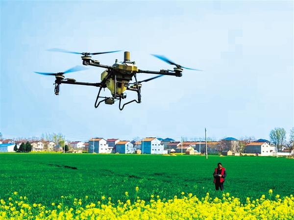 近日,在鹿邑縣玄武鎮(zhèn)解樓行政村的麥田上,一架無人機(jī)正在開展精準(zhǔn)飛防作業(yè)。時(shí)值小麥抽穗期,當(dāng)?shù)剞r(nóng)業(yè)部門組織專業(yè)化防治隊(duì)伍,采用“一噴三防”技術(shù),通過無人機(jī)對(duì)小麥實(shí)施病蟲害防治、葉面肥噴施等綜合管理。