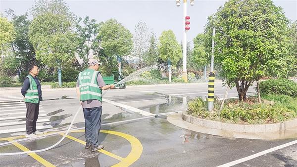 4月18日,西華經(jīng)開區(qū)工作人員在中航路開展路邊綠化養(yǎng)護(hù)工作,悉心為綠化植物澆水,為西華經(jīng)開區(qū)增添一抹生機(jī)與綠意。