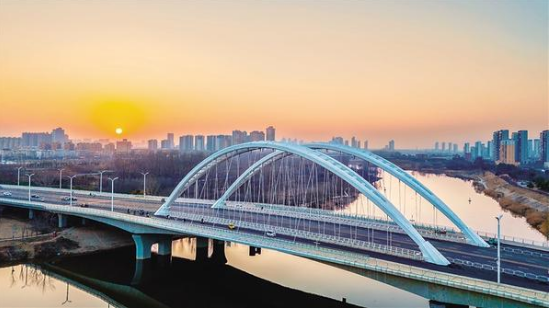 1月14日傍晚,夕陽(yáng)下的中原路大橋巍峨壯觀(guān),沙潁河水面如鏡。