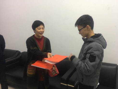 11月16日下午,市民樊女士來到周口市第一高級中學,感謝拾金不昧的美德少年涂航旗。據(jù)了解,涂航旗在12日下午撿到錢包后,由于要上學,就請爸爸把錢包送還失主?!?a href="http://m.cg-hz.com/content/2017-11/17/content_592761.htm" target="_blank" >[詳細]