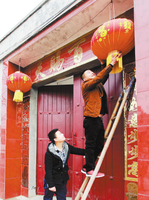 ①貼對聯(lián),掛燈籠,喜迎新春。 (記者 王映 攝)