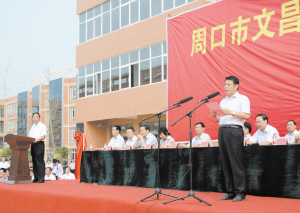2012年,乘著周口市委“科教興周戰(zhàn)略”的東風,由周口市委、市政府、市東新區(qū)管委會傾力打造,投資3億元創(chuàng)辦的周口市文昌中學應運而生。市委書記徐光親筆為該校題下“礪學弘文、昌達天下”的校訓。