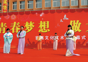 該校把特色教育作為發(fā)展的名片,推出“一班一品一特色”活動。學校建立以班級為單位的社團組織,并細分為體育類、舞蹈類、樂器類、美術類四大類別,共70個社團。比如:美工社團制作漢服進行表演,每一次都讓在場的觀眾潸然淚下,為自己是一個漢唐中華子孫而驕傲,為著漢唐服裝而自豪。學校出版了《求真大課堂》《走在成長的路上》《花季無悔》《中學生科技創(chuàng)作》《班主任德育思想錄》《國學之蘊》《家和萬事興》《共創(chuàng)一個夢 和韻文昌之家校共建》《“文昌杯”文明我先行 共筑一個夢》主題征文作文選等校本教材。為豐富校園文化生活,學校邀請中國政法大學的霍登科,歷史文化學者王少清,青少年心理教育專家張海選、萬禮彬,周口市中心醫(yī)院婦產科主任楊莉,河南國學院的施柳貞、王福琪、楊茹梅以及國內外優(yōu)秀大學生對學生進行國學誦讀和教育、演講比賽、法制教育、夢想目標教育、青春期心理和生理教育等活動。在該校首屆“做大成教育 展青春夢想”文化藝術節(jié)活動中,有一項活動叫珍藏十年“心愿瓶”,當滿載學生夢想的心愿瓶準備珍藏時,晴天出現了彩虹,讓在場的領導、家長、學生很驚嘆,說文昌中學的學生目標遠大,定有大才出現。這些有意義的活動對廣大未成年人的身心健康起到了很好的促進作用。