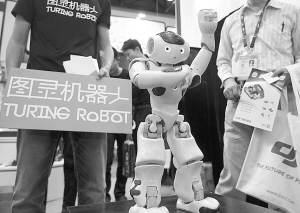 4月28日,觀眾在2015全球移動互聯(lián)網(wǎng)大會上觀看一款語音識別智能機(jī)器人。當(dāng)日,為期3天的2015全球移動互聯(lián)網(wǎng)大會在北京開幕,大會匯聚了來自全球移動互聯(lián)網(wǎng)公司的創(chuàng)新領(lǐng)袖,探討行業(yè)熱點,分享全球移動互聯(lián)網(wǎng)領(lǐng)域的重大機(jī)遇與變革。