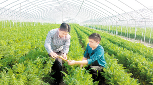 在扶溝縣汴崗鎮(zhèn)越秀蔬菜種植園區(qū),技術人員正在查看胡蘿卜長勢。該鎮(zhèn)大力推進種植業(yè)結構調整,流轉1300多畝耕地,建成了全國最大面積的單片反季節(jié)胡蘿卜種植基地,預計每畝產值可達萬元。(記者 王泉林 攝)