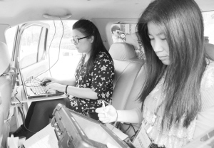 圖④沈丘縣三名考生準(zhǔn)備乘坐“志遠(yuǎn)愛心車隊(duì)”的車輛前往考點(diǎn)。