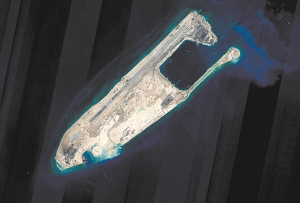 中國(guó)在南沙群島部分駐守島礁上的建設(shè)將于近期完成陸域吹填工程   經(jīng)向有關(guān)部門(mén)了解,中國(guó)在南沙群島部分駐守島礁上的建設(shè)將于近期完成陸域吹填工程。這是完成陸域吹填工程后的永暑礁衛(wèi)星圖片。