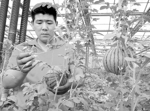 扶溝縣豫星農業(yè)發(fā)展有限公司種植的“迷你彩虹西瓜”,以個小、皮薄、甜度高暢銷省內外,畝均收入達3萬元。圖為員工正在為“彩虹西瓜”整枝打杈。(谷志方 攝)