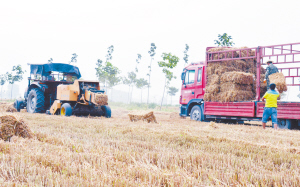 6月8日,紙店鎮(zhèn)越有養(yǎng)牛場與紙東村慧豐種植專業(yè)合作社在麥田里簽下秸稈收購訂單,1000多畝地的秸稈全部回收,讓該村的秸稈禁燒工作提前完美“收官”。圖為越有養(yǎng)牛場的工人跟在秸稈打捆機后面,往大卡車上裝秸稈。(遲馳 攝)
