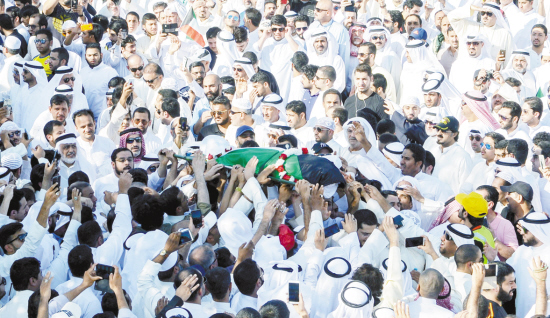 科威特民眾悼念清真寺爆炸事件遇難者 6月27日,民眾在科威特北部蘇萊伊哈特陵園參加活動,悼念伊瑪目薩迪克清真寺爆炸事件的遇難者??仆財?shù)千名民眾27日在科北部蘇萊伊哈特陵園悼念伊瑪目薩迪克清真寺爆炸事件的遇難者。